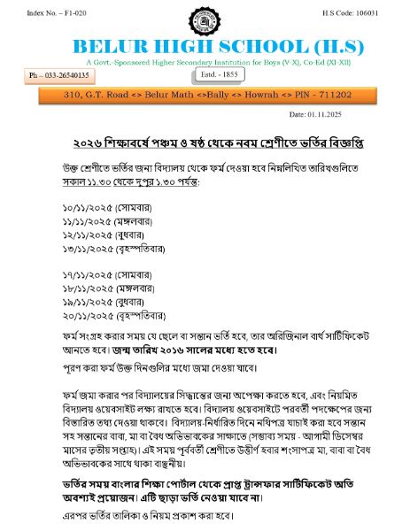 Description: Admission for Class 5 to 8_2026